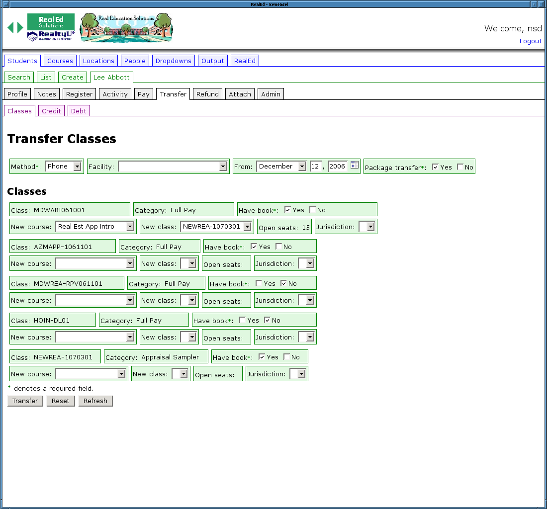 Back Back RealEd provides a streamlined interface for transferring students between classes.